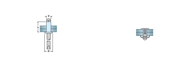 Detto anche “rivetto a fiore” per la sua particolare apertura in fase di fissaggio, è utilizzato per applicazioni dove il fissaggio avviene tra lamiera e materiali come plastica, legno, cartongesso e simili. La testa larga è raccomandata in caso di superfici più irregolari, per aumentare la superficie di appoggio. Disponibile nella gamma di diametri standard e in diversi spessori serrabili.